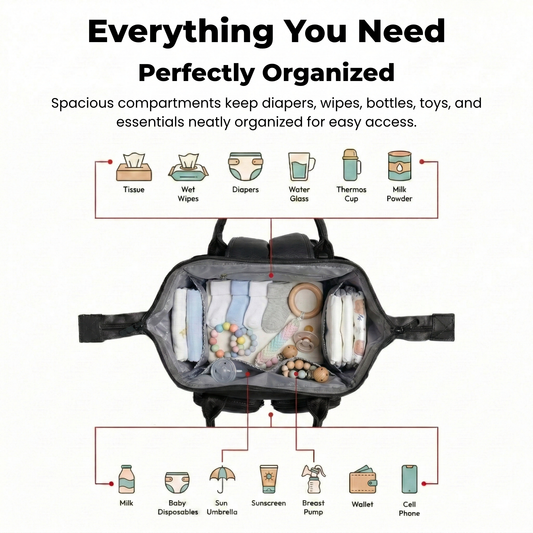 Diaper Bag Vegan Leather (Black & Grey)