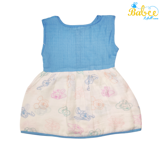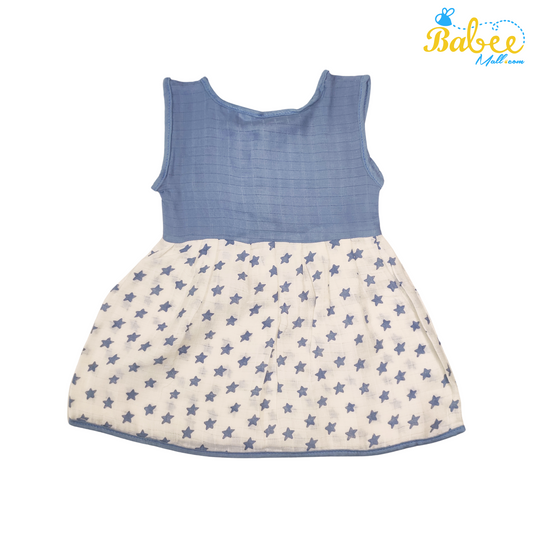 Baby Muslin Frock with Printed Delight 0-12 Months (Blue Start)