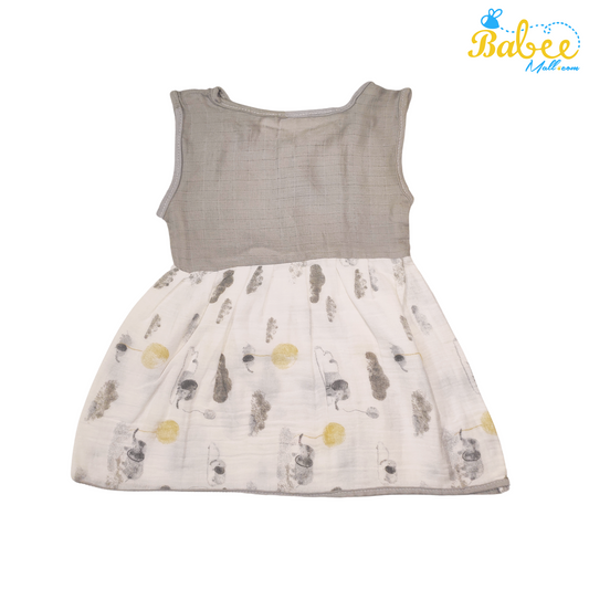 Baby Muslin Frock with Printed Delight 0-12 Months (Gray)