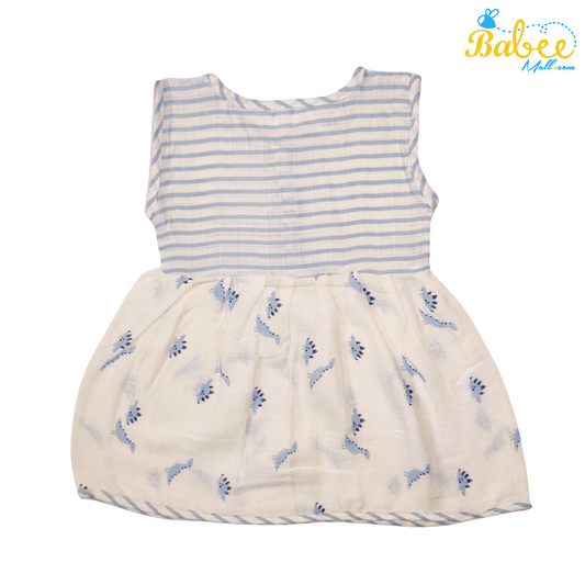 Baby Muslin Frock with Printed Delight 0-12 Months (Blue Strip)