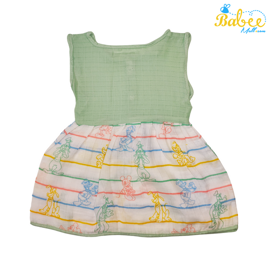 Baby Muslin Frock with Printed Delight 0-12 Months (Green)