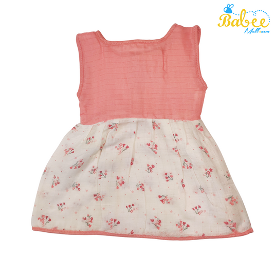 Baby Muslin Frock with Printed Delight 0-12 Months (Rose)