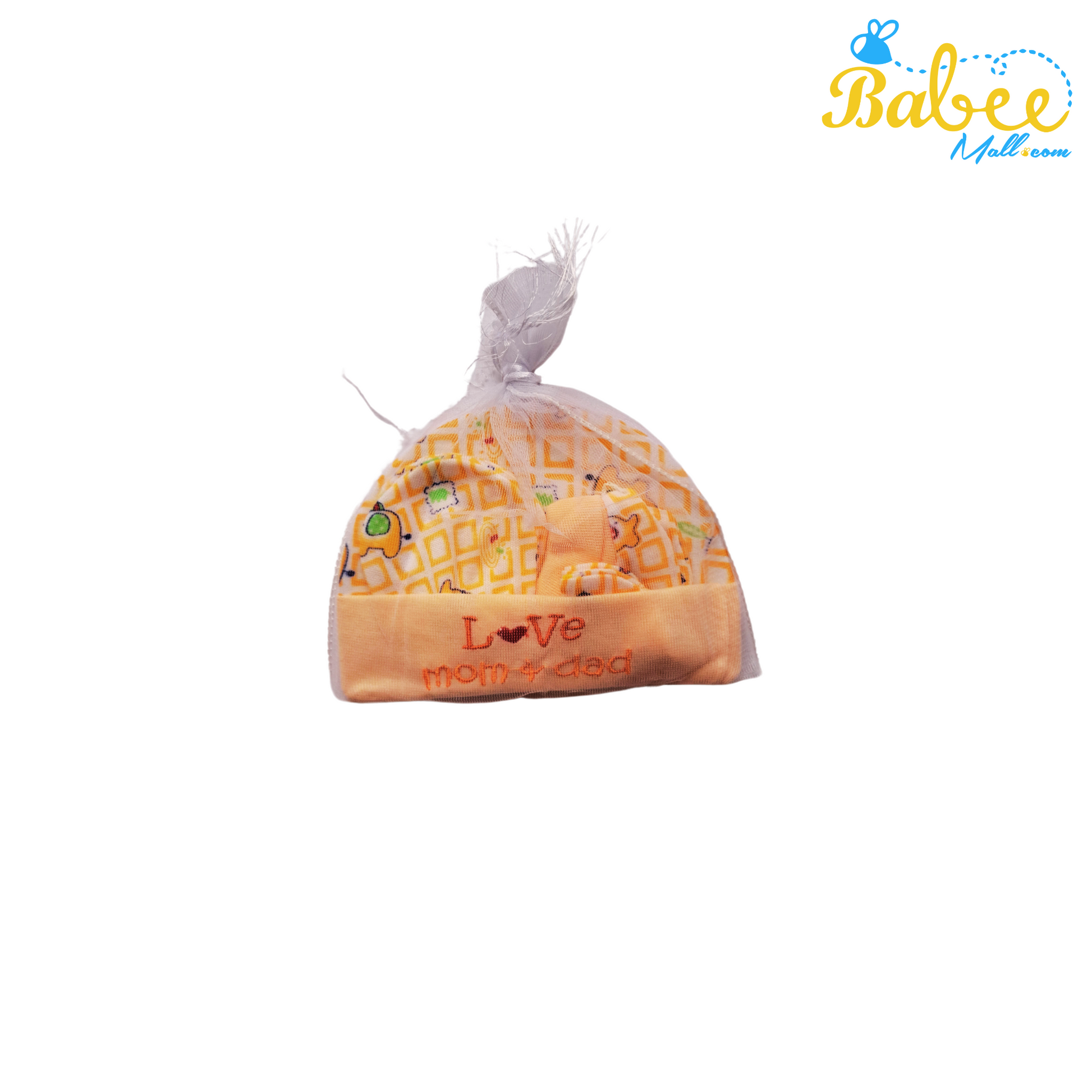 Baby Mitten, Booties, and Cap Set (Orange Cube)